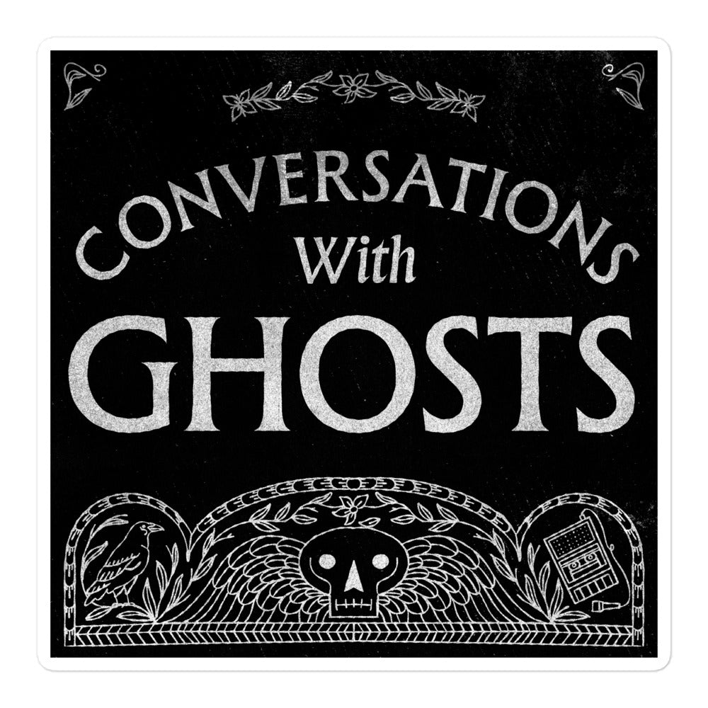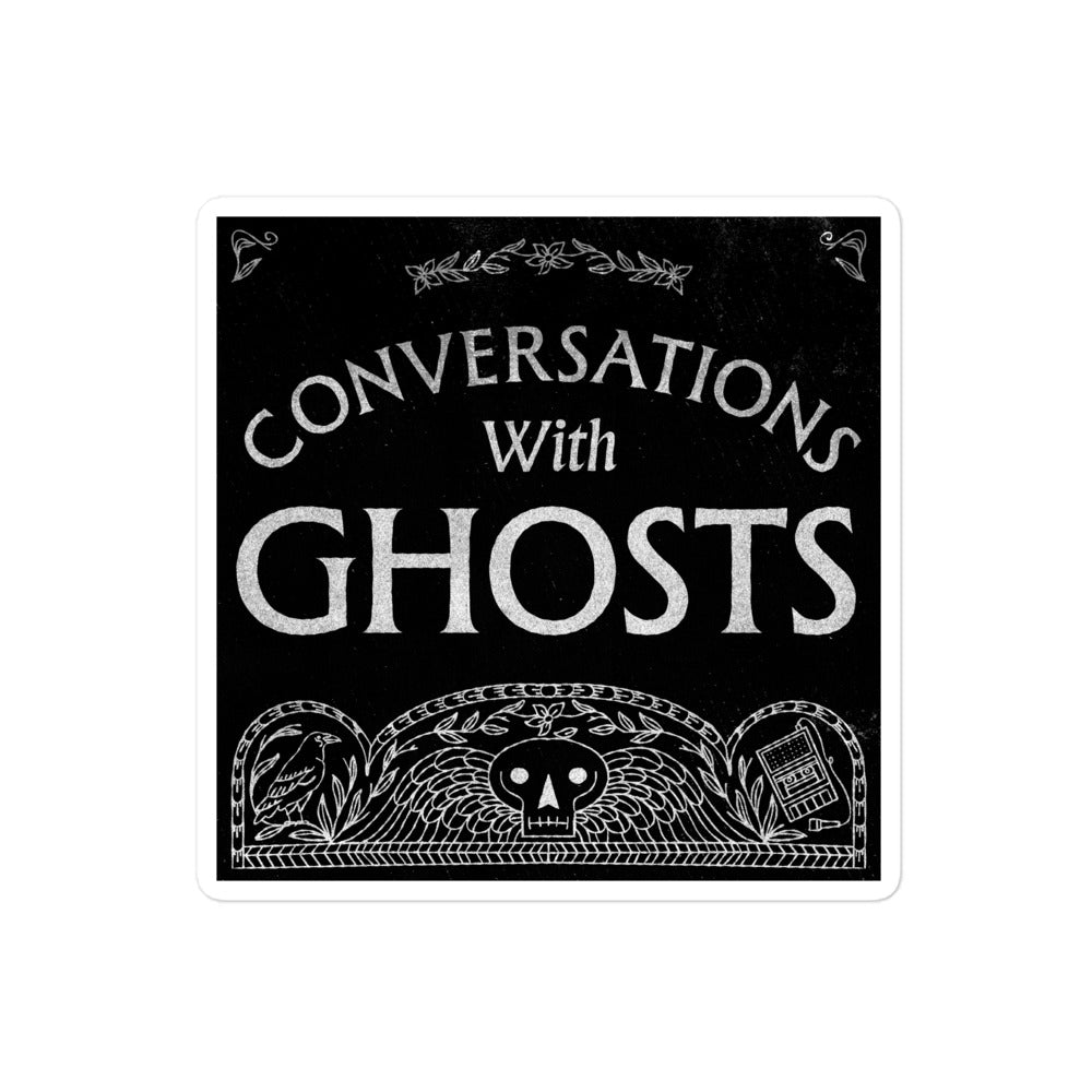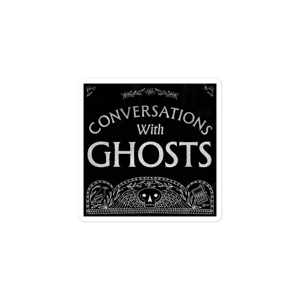 This is a sticker with the logo of Conversations with Ghosts on it. Here's more information about sticker: